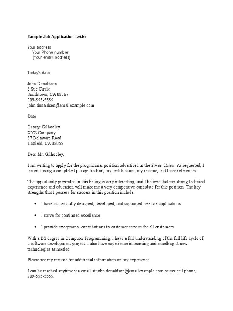 It also contains detailed information about why you consider yourself the most qualified for the job you're applying for. The purposes of this letter are to get your enclosed resume read and to generate interviews. The application letter is geared toward a certain job, and it is tailored to the skills and specifications listed in the job posting. Together with expressing your interest in the job, the letter will highlight your qualifications, skills, experience and achievements. A letter of application, also known as a cover letter, is a document sent with your resume to provide additional information about your skills and experience to an employer. Use about 1 margins and align your text to the left, which is the standard alignment for most documents. The best cover letter sample for your job application. A job application letter, also known as a cover letter, should be sent or uploaded with your resume when applying for jobs. A greeting and opening statement which compels them to read further. A job application letter is used to identify and select suitable candidates for a particular position. A job application letter is essentially a detailed pitch to convince a prospective employer of your eligibility for the open position for which you are applying. Don't worry, we have you covered. If it is well written, the applicant gets the chance.